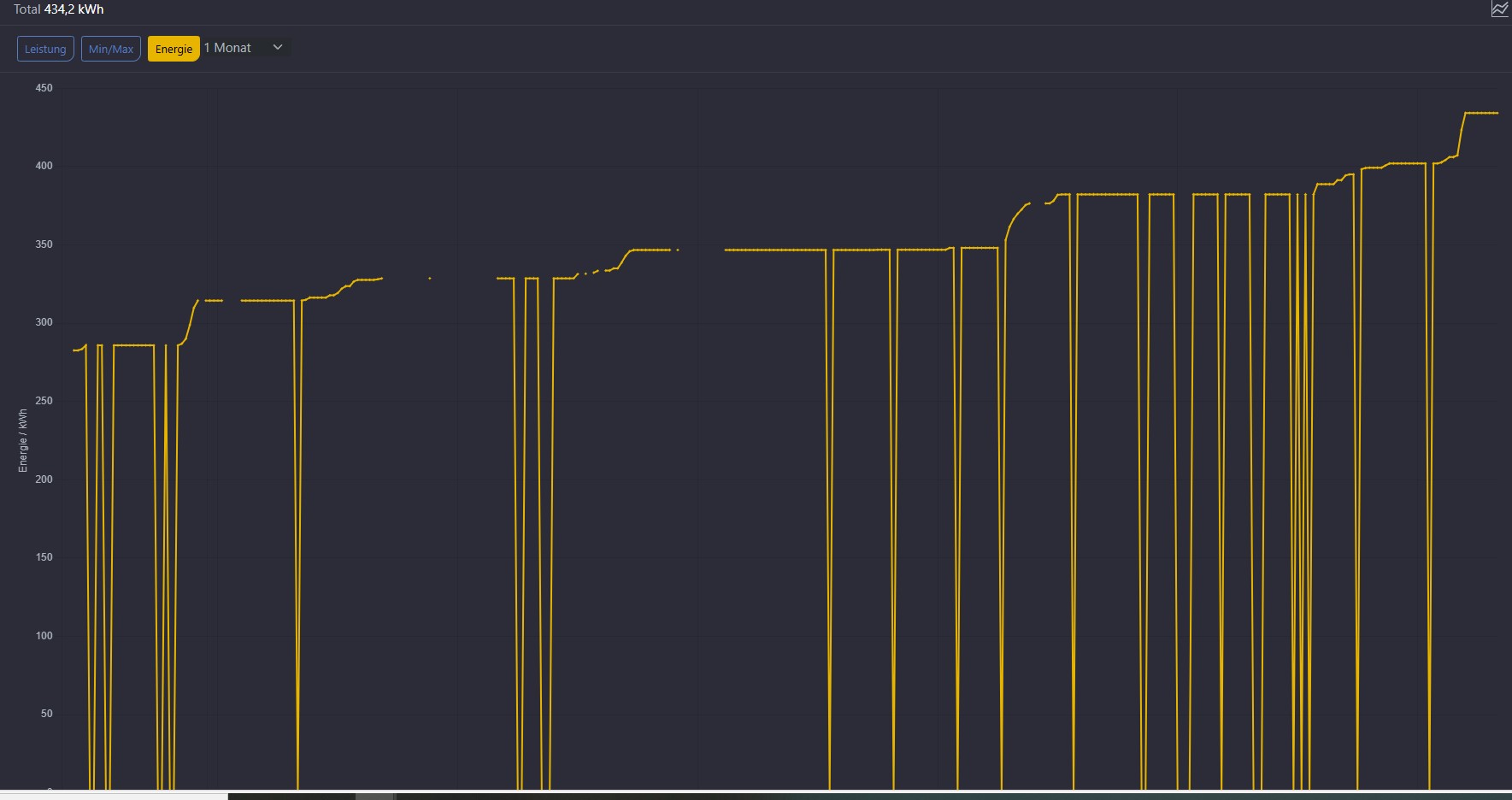 … ein paar Ladungen später beträgt der tatsächliche Zählerstand 434,2 kWh