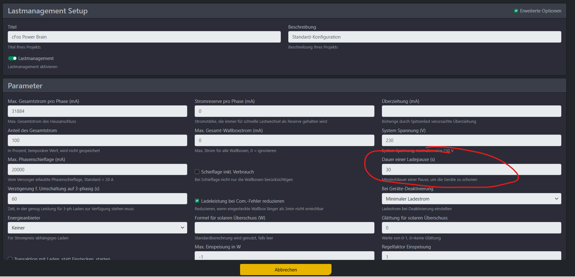 Das geht im Lastmanagement-Setup. Minmalzeit sind 30 sek. markiert als Spam