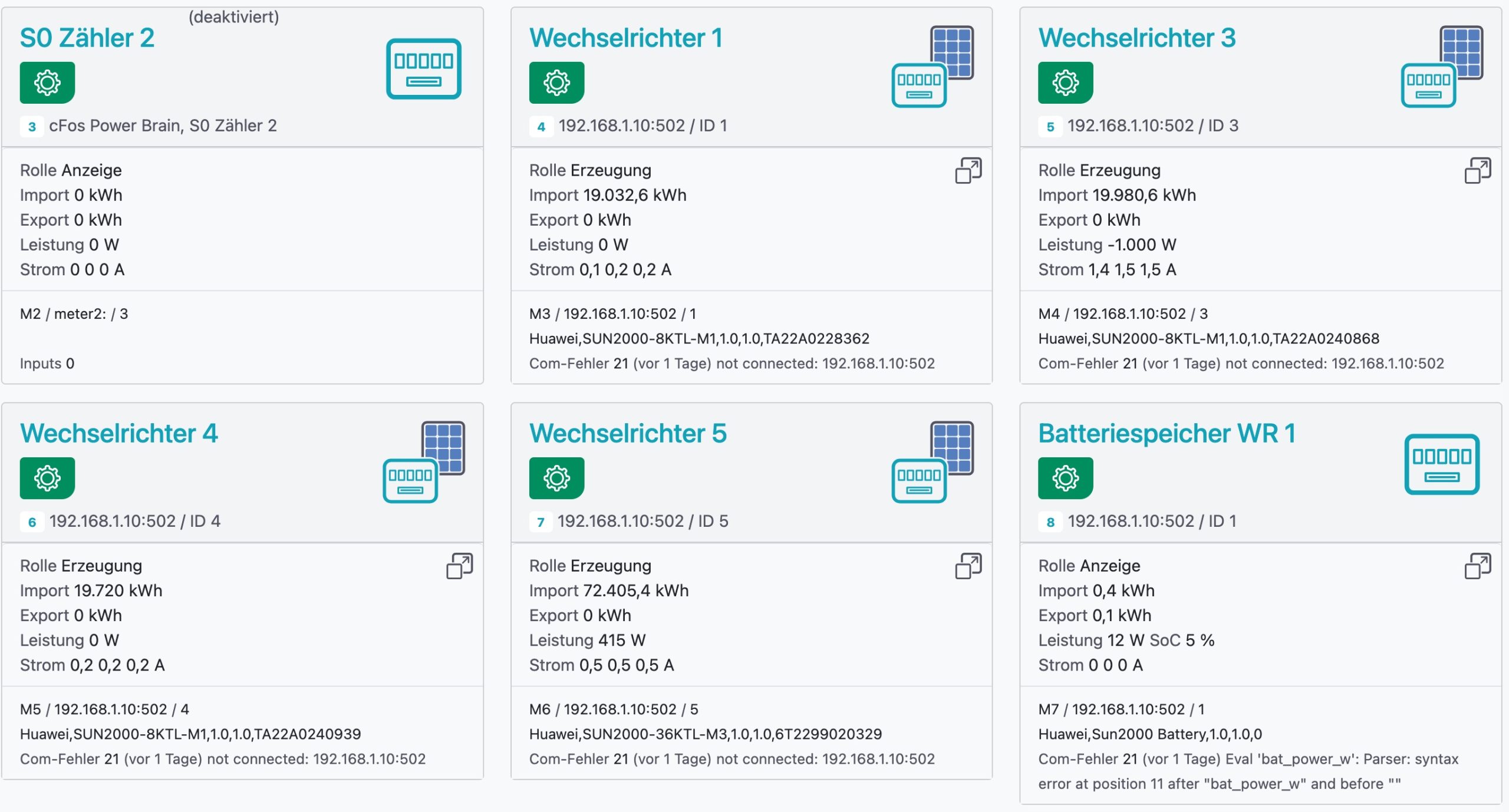 Hallo liebe Community, ich habe eine Frage zur Laderegel. Ich möchte gern Überschussladen aktivieren, wenn die Leistung meiner 4 Wechselrichter > 0, bzw. > 4.2 kW ist. Die Übersicht habe ich angehängt. Die Werte liegen alle vor. Nach meinem Verständnis muss ich einen Zähler definieren, der die Leistung misst. Dieser Zähler ist bei mir virtuell, da die Leistung direkt aus den Bausteinen (Kacheln) kommt. Wie parametriere ich das am besten? Ich möchte die Laderegel dann über eine Variabel aktivieren. Die Variable setze ich über die REST API. Oder gibt es einen anderen Weg, den Überschuss zu ermitteln?