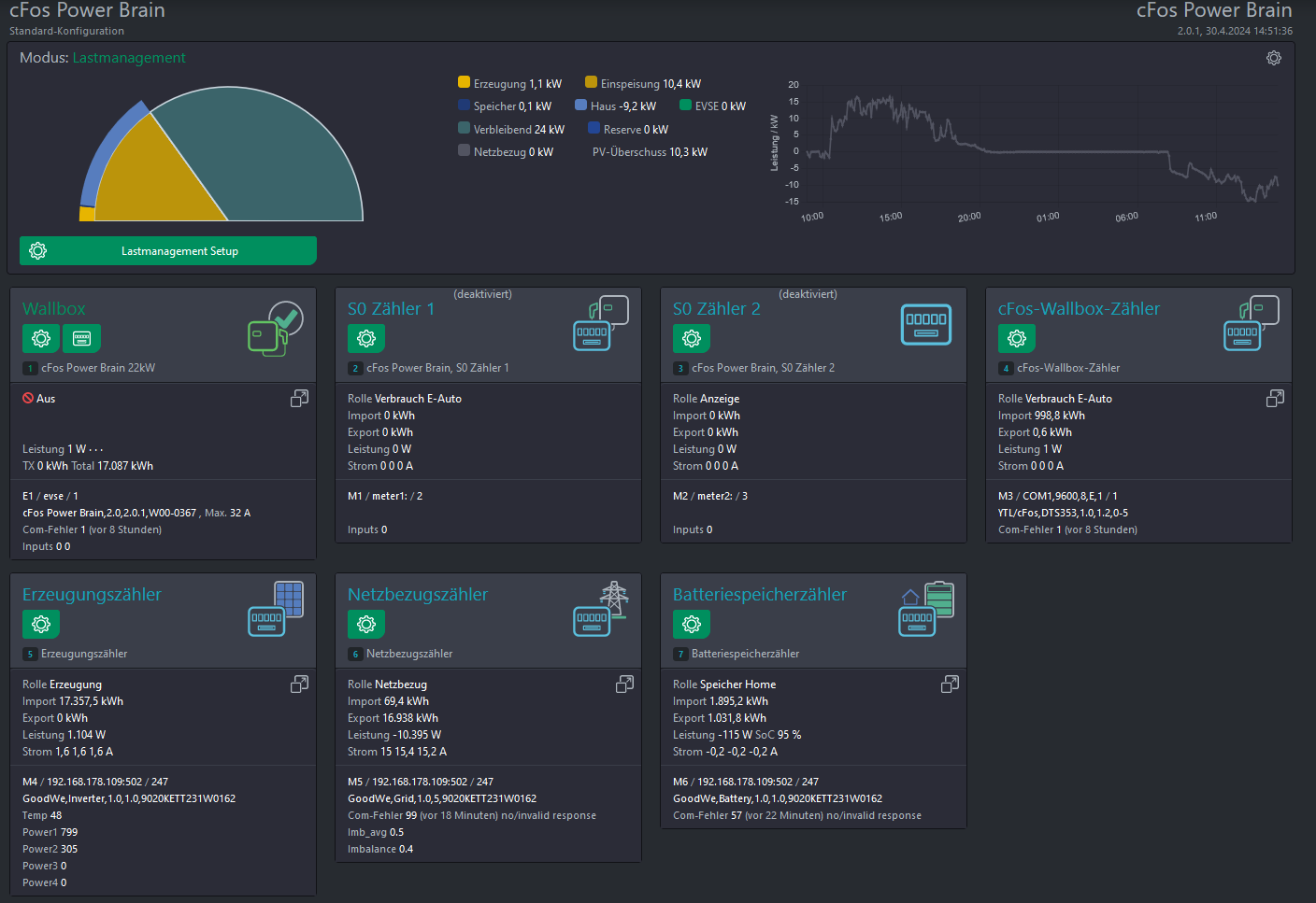 – Neue Zähler eingerichtet gemäß Anleitung (https://www.cfos-emobility.de/network/service/anleitungen/solares-ueberschussladen-mit-dem-cfos-charging-manager/)