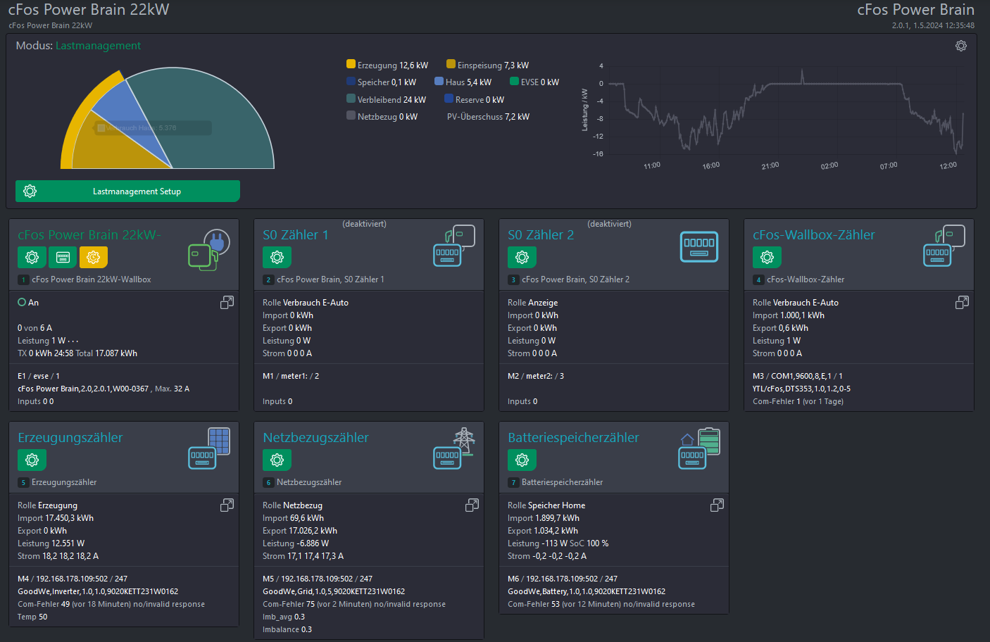 anbei der Screenshot mit dem Erzeugungszähler. Sieht sehr gut aus: Leistung zeigt "12.551 W" an und die GoodWe-App zeigt auch eine PV-Leistung von 12.543 W an. Wegen der Laderegeln schaue ich mal heute Abend, wenn kein PV-Strom mehr anliegt.