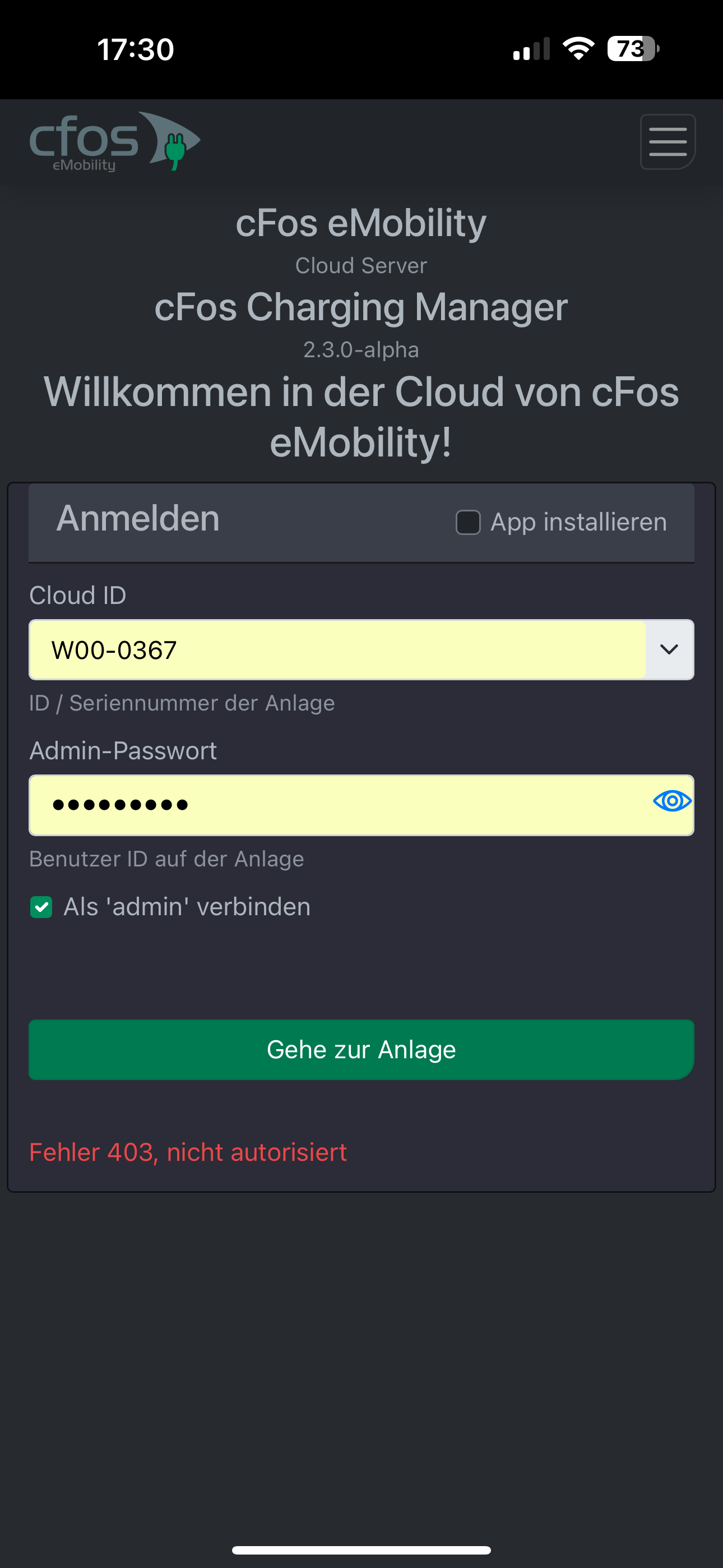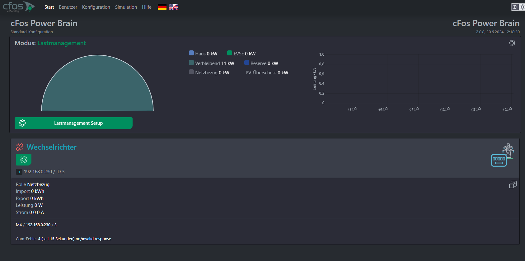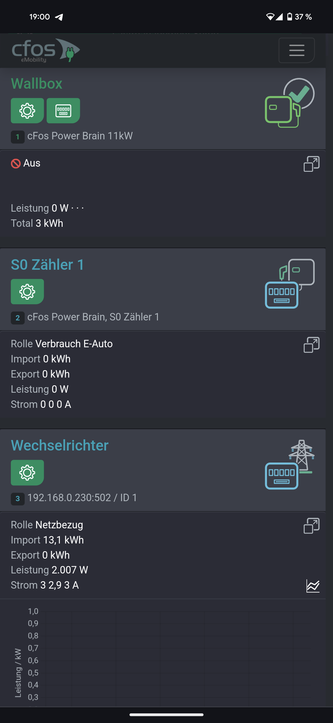 kurzzeitig hatte ich auch mal ein Signal an der CFos Wallbox jedoch gefolgt von einigen Verbindungsabbrüchen. Auf einmal war das Signal jedoch weg und ich bekomm es nicht mehr zu laufen.