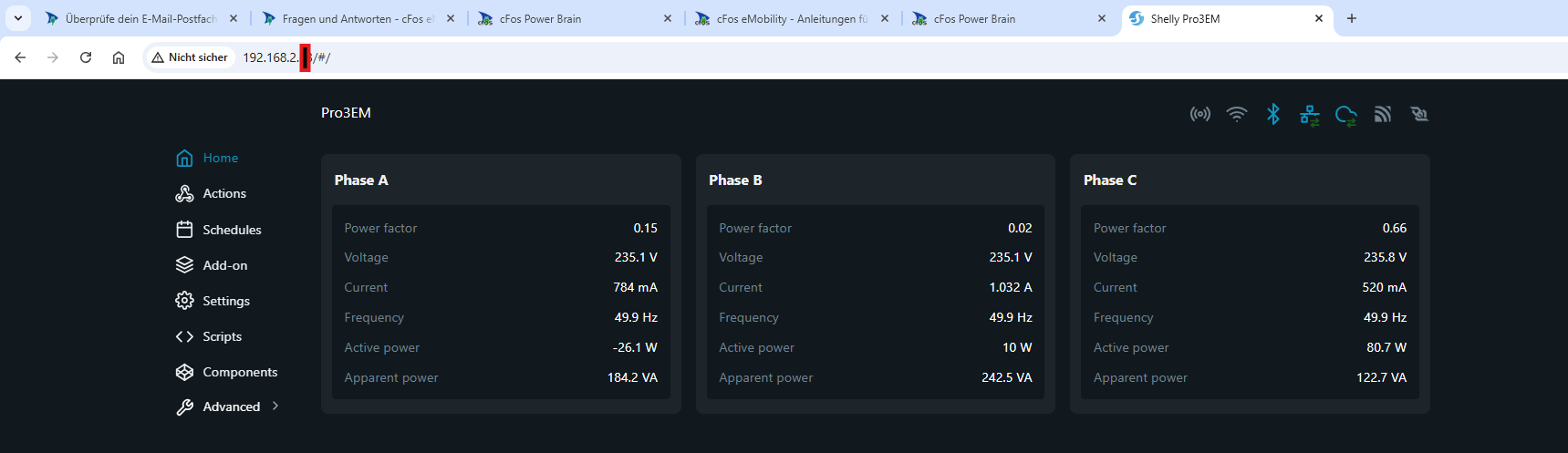 Shelly Pro3EM mit Power Brain verbinden – geht nicht