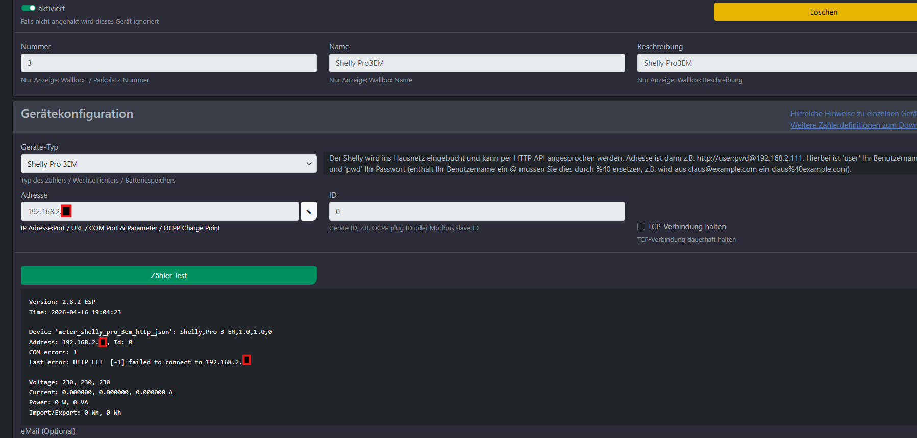 Shelly Pro3EM mit Power Brain verbinden – geht nicht