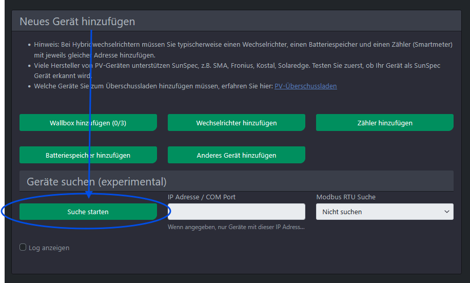 Mit der firmware 2.12 für cFos Power Brain Wallboxen haben wir eine experimentelle Geräteerkennung eingebaut. Diese sollte viele der unterstützten Zähler und Wechselrichter finden können.